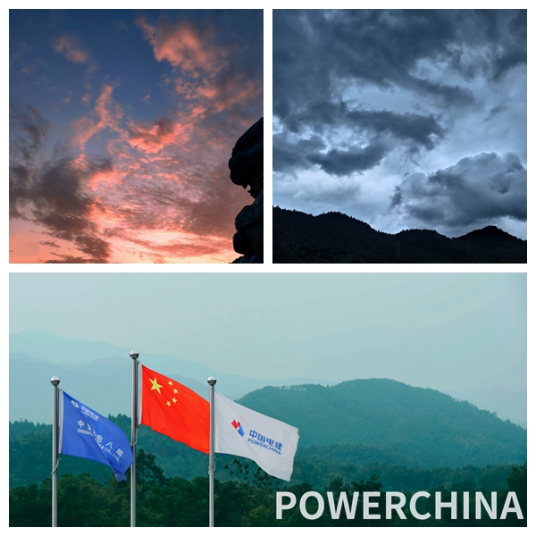 而被圍在其中的是純凈通透的藍天,天氣很好時,想趁不注意偷望那懸在上方的明亮紅日,莫名期望著能捕捉到它不發(fā)光的樣子,卻時時被它耀眼的光芒刺的睜不開眼。萬里無云的時候看天空是一張被浸染的布,布的邊界由翡翠鎮(zhèn)尺截斷,像是等待著有人執(zhí)筆描畫。有時看天空又是倒映的海,我們即是走在海上的人,也是游在海下的魚。藍天白云綠山,構(gòu)成了一副山水畫,人行其中,腳下踩著藍,頭上頂著白,背后靠著綠,便化作一點水墨融入畫中。瀝瀝淅淅的雨讓天空變得灰蒙蒙的,于是它就失去了本來的色彩,既不是紙也不是海,只是襯托著辦公樓前方紅色的五星旗幟隨風亂舞,似是襯托著另一輪紅日。