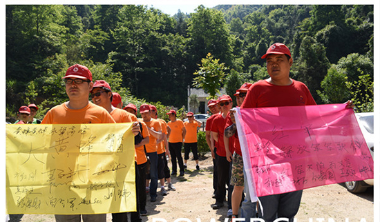 5月29日的清晨,皖南小城池州還徜徉在端午假期的慵懶中,街道上還鮮見車輛、行人。在秋浦河與長江的交匯處,初夏陽光映照下的“中國電建”幾個 大字熠熠生輝。公司辦公樓前,在幾位身著迷彩裝的教練指揮下,長九首屆戶外拓展訓練營全體隊員已經集結完畢,整裝待發(fā)。行車一個多小時我們便到了目的地-石臺縣百丈崖戶外拓展基地。一路上湖光山色,層巒疊翠。進入山區(qū),空氣變得格外清新,一呼一吸都沁人心脾。是因為空氣中富含的負氧離子么,多么親切的天然大氧吧??!傳說中的原始森林剛一走進就甩給我們大大的驚喜!