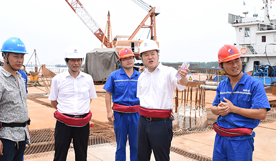 謝衛(wèi)東副總經(jīng)理先后來(lái)到礦山、物流廊道、碼頭工程現(xiàn)場(chǎng)考察,詳細(xì)了解了項(xiàng)目總體規(guī)劃和報(bào)建、施工準(zhǔn)備工作進(jìn)展情況。他對(duì)公司不懼困難不畏艱辛,為推進(jìn)項(xiàng)目建設(shè)而付出的不懈努力表示由衷的贊許,勉勵(lì)公司再接再厲,科學(xué)策劃,安全、優(yōu)質(zhì)地將項(xiàng)目建成投產(chǎn)。