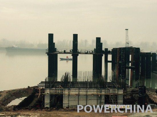 日前,碼頭取水泵站混凝土澆至水面高程,在長江汛期到來前順利實現(xiàn)這一關(guān)鍵工程節(jié)點。