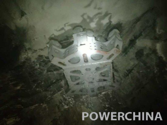 3月24日,1#溜井先導(dǎo)孔精準(zhǔn)貫通,水電八局項(xiàng)目部馬不停蹄進(jìn)行擴(kuò)孔刀盤安裝,順利完成擴(kuò)孔刀盤與鉆桿對(duì)接后,立即進(jìn)行反拉施工,前期開孔緩慢進(jìn)尺,穩(wěn)步鉆進(jìn)。期間遇到第183米處溶洞,由于刀盤受力不均,容易造成滾刀損壞。經(jīng)項(xiàng)目技術(shù)人員研究討論,決定采取低轉(zhuǎn)速、慢進(jìn)尺的方案順利通過溶洞。隨著巖層情況的好轉(zhuǎn),施工過程的不斷優(yōu)化, 取得了日進(jìn)尺16米的優(yōu)異成績,累計(jì)進(jìn)尺突破120米。