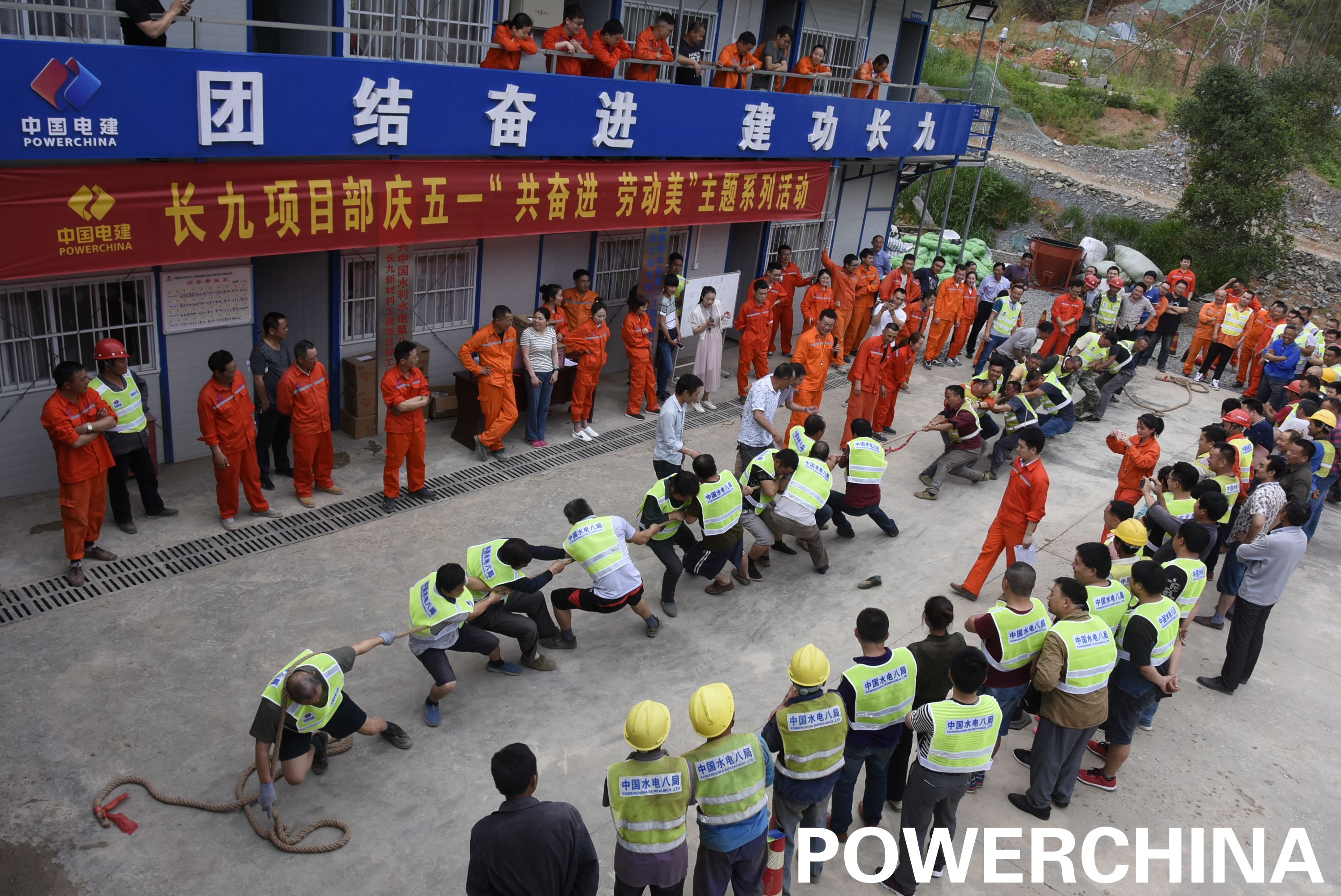 5月1日下午4:30,水電八局項(xiàng)目部組織開展“慶五一 共奮進(jìn) 勞動(dòng)美”主題系列活動(dòng)。本次活動(dòng)共舉行了三項(xiàng)比賽,包括拔河比賽、集體與個(gè)人跳繩比賽。部分協(xié)作單位在做好生產(chǎn)安排后選派隊(duì)員參加了拔河比賽,項(xiàng)目部參加了全部三項(xiàng)比賽。