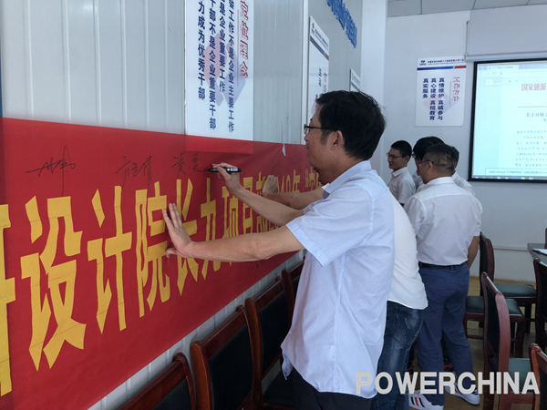 全體員工集體宣誓,依次在印有“生命至上、安全發(fā)展”橫幅上簽下自己的名字,也簽下對(duì)安全工作的鄭重承諾。