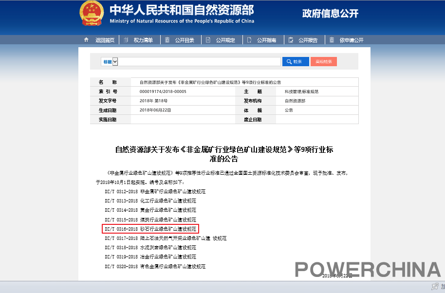 6月22日,國家自然資源部發(fā)布公告:《非金屬行業(yè)綠色礦山建設(shè)規(guī)范》等9項推薦性行業(yè)標(biāo)準(zhǔn)已通過全國國土資源標(biāo)準(zhǔn)化技術(shù)委員會審查,現(xiàn)予批準(zhǔn)、發(fā)布,于2018年10月1日起實施。公司參與編制的《砂石行業(yè)綠色礦山建設(shè)規(guī)范》(編號:DZ/T 0316-2018)名列其中。