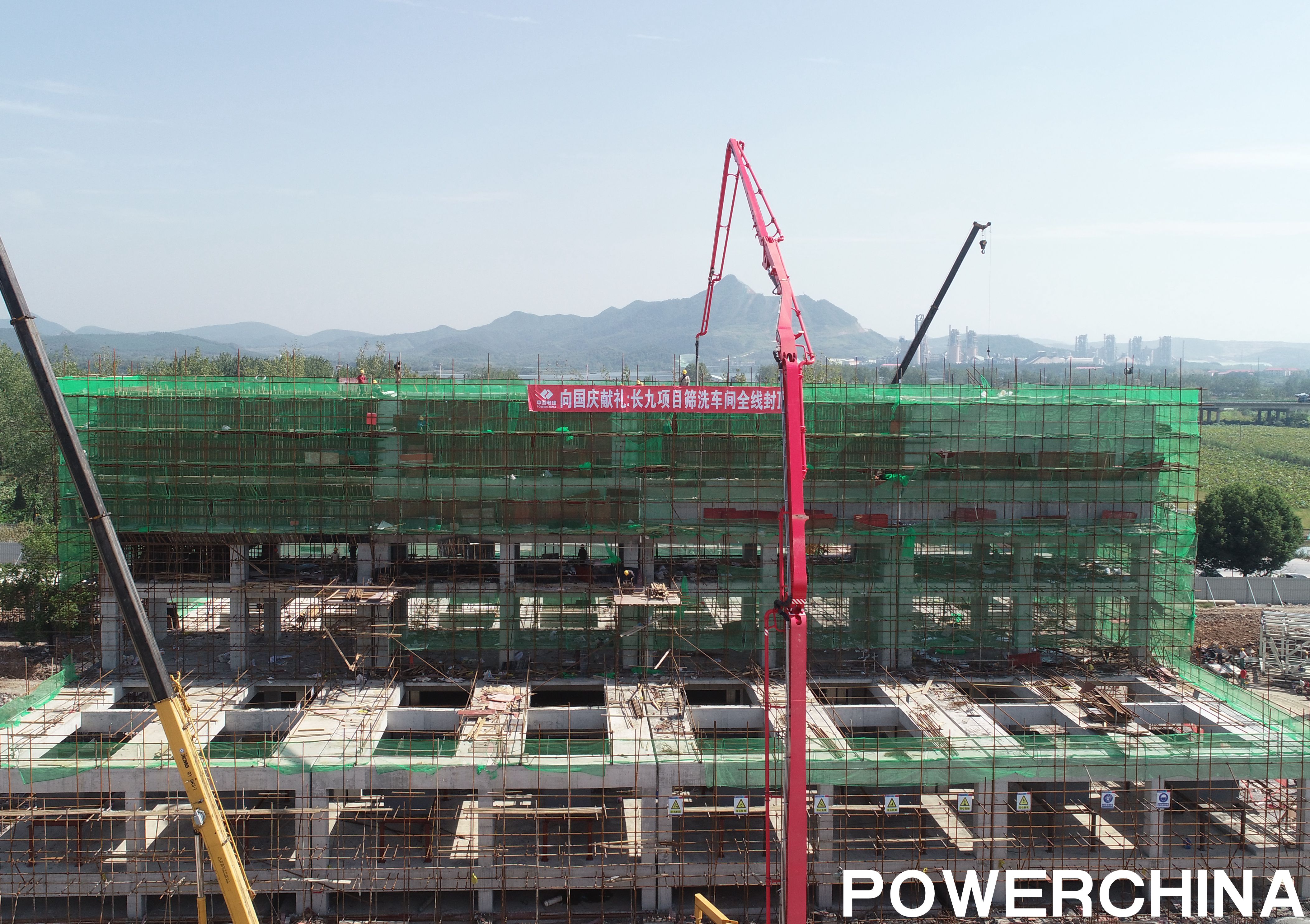 9月30日,碼頭陸域篩洗車間主體結(jié)構(gòu)順利封頂。
