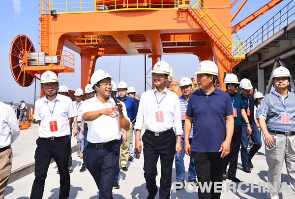 調(diào)研組先后實地察看了礦山加工系統(tǒng)和碼頭一期工程,聽取了項目概況以及工程建設情況的介紹。礦山加工系統(tǒng)土建工作已經(jīng)結(jié)束,成品砂堆場網(wǎng)架安裝過半,設備安裝正在緊張進行;碼頭一期工程最后建設的1#泊位平臺已經(jīng)澆筑完成; 4#、5#裝船機傲然聳立;引得委員們贊嘆不已。