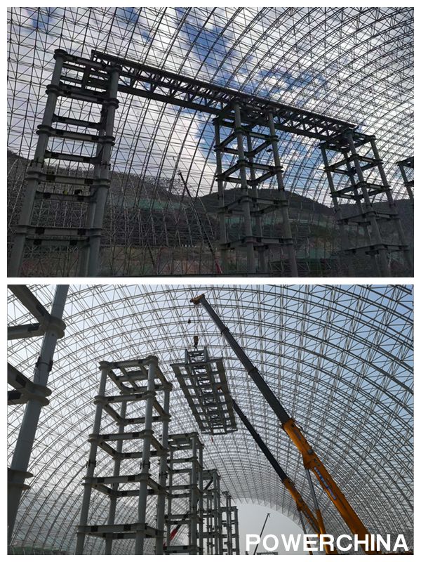 礦石加工系統(tǒng)成品砂倉膠帶機(jī)桁架開始吊裝