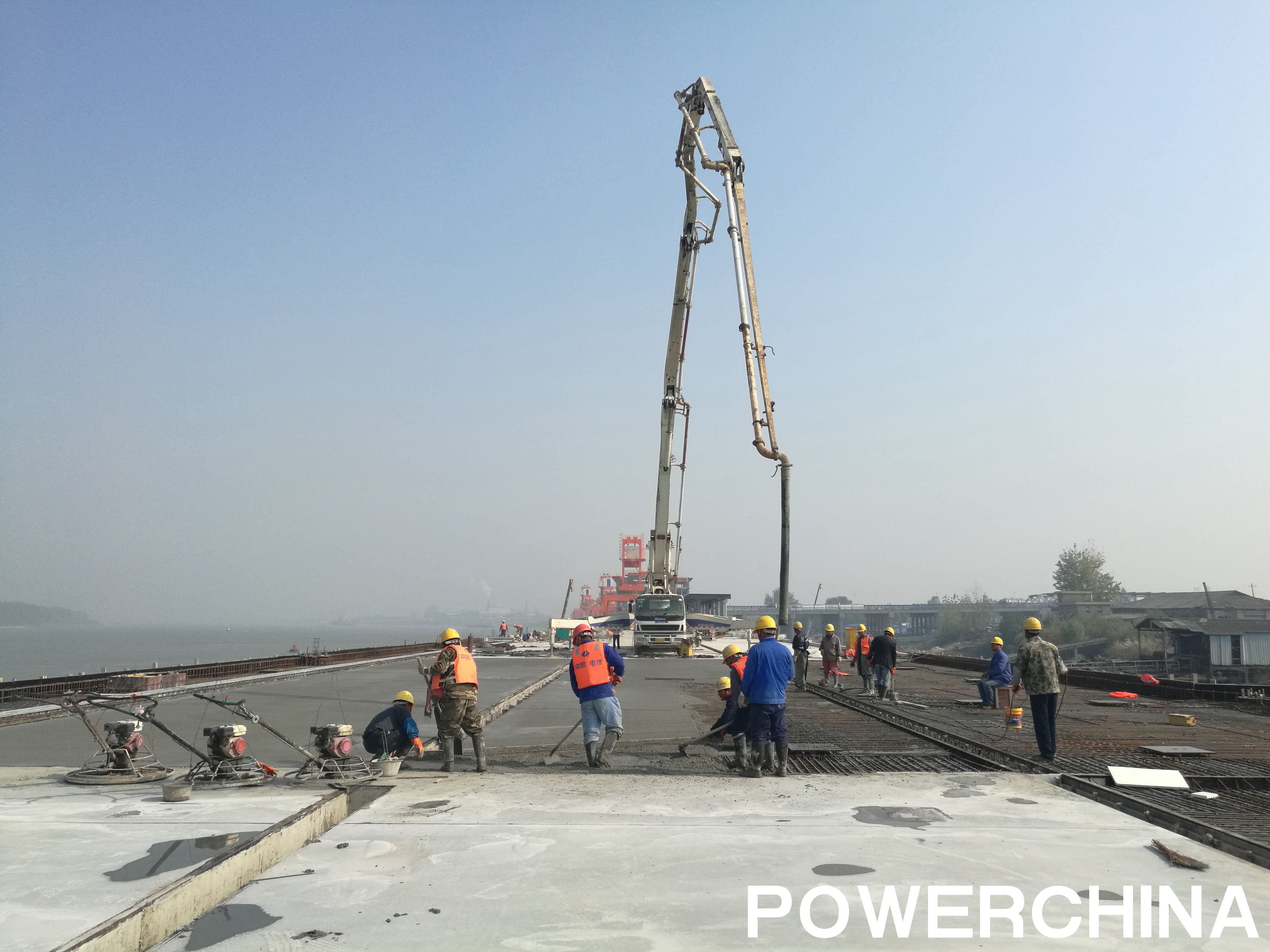 11月2日,隨著最后一車混凝土澆筑的完成,2#泊位面層澆筑完成。至此,長九碼頭一期工程平臺土建部分全部施工完成。