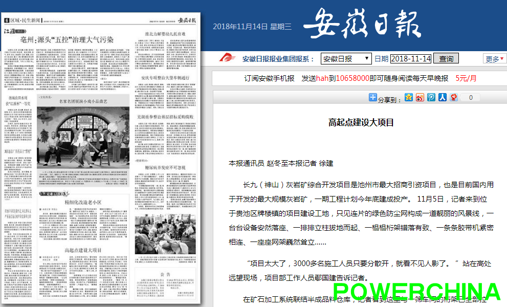 2018年11月14日,安徽日?qǐng)?bào)刊載《高起點(diǎn)建設(shè)大項(xiàng)目》,報(bào)道長(zhǎng)九項(xiàng)目建設(shè)情況。