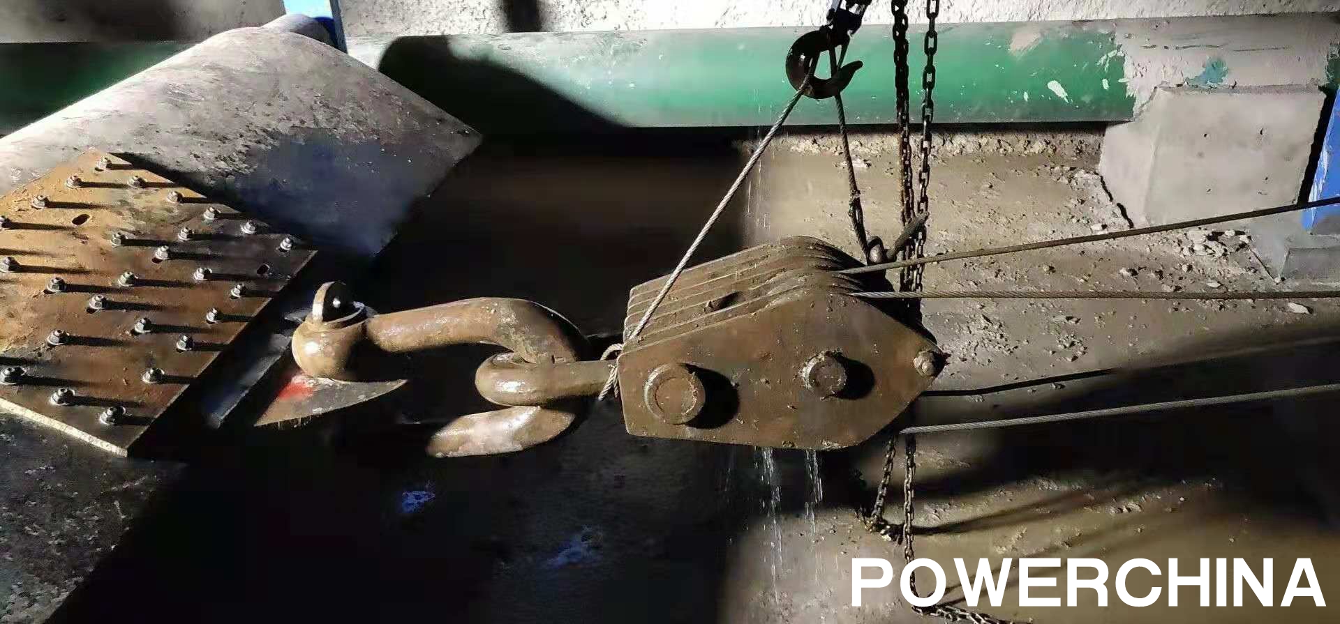 物流廊道全線共計(jì)12.98公里,長(zhǎng)距離膠帶機(jī)單線單條,線路中有多個(gè)半徑約3000米的水平轉(zhuǎn)彎。皮帶收緊工作從物流廊道中部轉(zhuǎn)運(yùn)站分兩段進(jìn)行。此次皮帶收緊工作為機(jī)尾至中轉(zhuǎn)站段,長(zhǎng)度為6.68公里。該段皮帶長(zhǎng)13360米,自重1000余噸,途經(jīng)長(zhǎng)約400米、高差40米的爬坡路段,給皮帶收緊工作帶來了巨大挑戰(zhàn)。為此,項(xiàng)目部召開專題會(huì)進(jìn)行論證,確定了在終端通過鋼絲繩連接皮帶和卷?yè)P(yáng)機(jī),根據(jù)動(dòng)滑輪省力的原則布置多組動(dòng)滑輪,再由卷?yè)P(yáng)機(jī)提供牽引力進(jìn)行收緊的施工方案。同時(shí)沿線安排專人巡視,以及時(shí)發(fā)現(xiàn)和處置皮帶收緊過程中可能出現(xiàn)的跑偏打滑等問題。